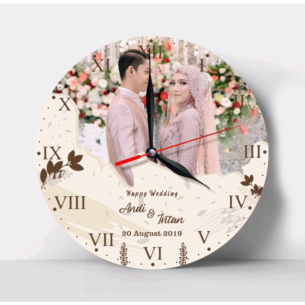 Sebagai dekorasi ruangan kamu bisa memberikan jam dinding yang spesial dengan nama dan foto. Jam dinding terbuat dari bahan kayu MDF dengan diameter kurang lebih 20 cm.