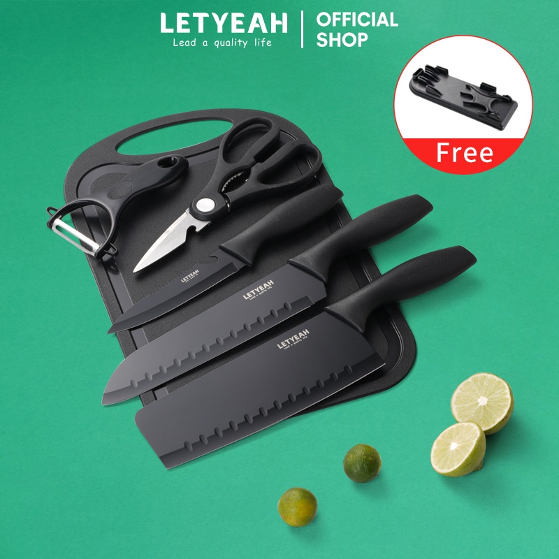 Dengan tampilan yang elegan, pisau dapur set dari LetYeah ini siap untuk melengkapi keindahan dan kebutuhan dapurmu. Terdiri dari 7 set, di antaranya adalah pisau dapur, pisau koki, pisau pengupas buah, gunting, talenan serta tempat pisau. Memastikan segala kebutuhan memotong, mengiris, mengupas, atau mencincang bahan makanan terpenuhi.