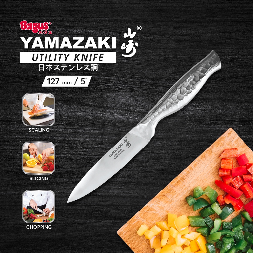 Pisau multifungsi merek Bagus Yamazaki ini terbuat dari Japan Stainless Steel, dengan mata pisau yang tajam yang dapat memudahkan proses memotong dan tidak mudah berkarat. Bagus Yamazaki Utility Knife ini merupakan pisau dapur yang menjadi andalan para koki dalam memasak.