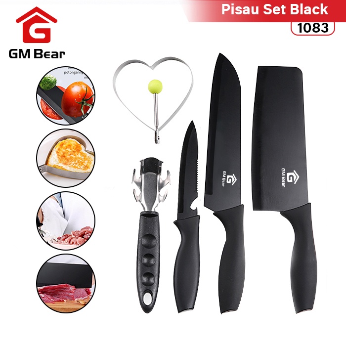 Set Pisau GM Bear 1083 merupakan kitchen set berbahan stainless steel berkualitas, kuat, anti karat dan tahan lama. Didesain ergonomis sehingga nyaman dan mudah untuk digenggam dan tidak mudah tergelincir.
