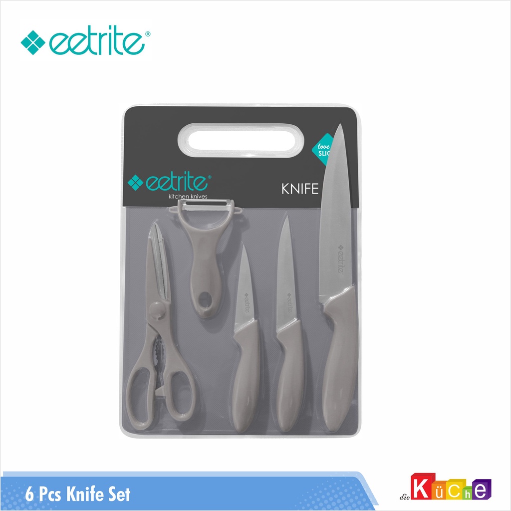 Dijual satu set, paket ini terdiri dari slicer knife dan utility knife. Ada juga paring knife dalam paket ini. Dalam paket juga ada sebuah peeler berkualitas.
