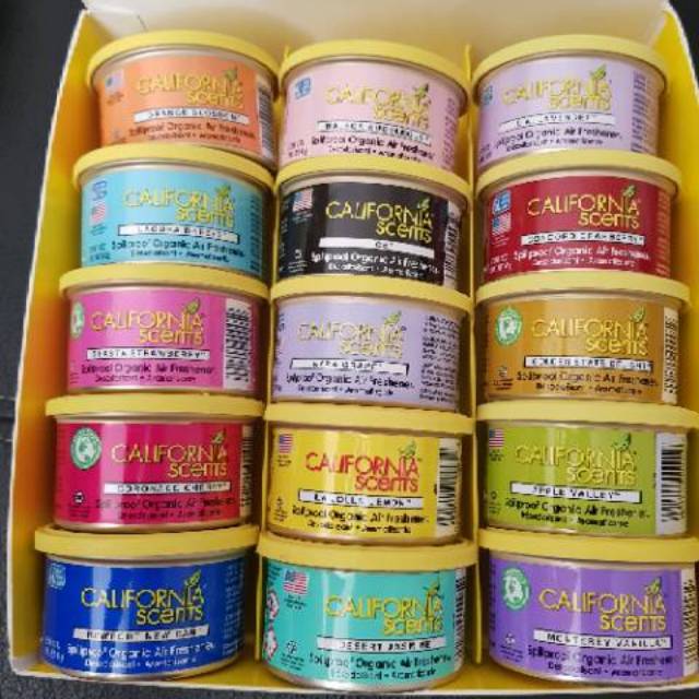 California Car Scents bisa jadi pilihan Anda. Dihadirkan oleh brand California Scents yang merupakan produsen pengharum ruangan asal Amerika, kualitasnya tak perlu dipertanyakan. Produk yang satu ini bisa diletakkan dimana saja. Anda tak perlu khawatir produknya tumpah karena ini adalah parfum mobil bentuk padat. Ada 16 pilihan aroma wangi yang bisa dipilih. Produk ini memiliki ventilasi di bagian atas kalengnya. Parfum mobil ini akan menyerap bau tak sedap dan menebarkan aroma wangi yang kuat. Anda bisa meletakkan di dashboard atau dalam holder cup mobil. Beberapa aroma andalannya adalah Malibu Melon, Monetery Vanilla, dan Coronado Cherry.