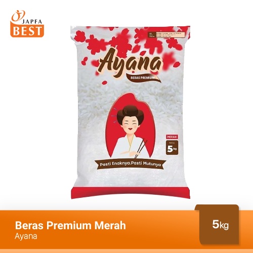 Beras Premium Ayana Merah adalah beras putih premium dengan kemasan berwarna merah yang pulen, enak, dan memiliki patahan yang sangat sedikit. Beras ini diolah secara alami tanpa pemutih, pewangi, atau pengawet, sehingga cocok untuk berbagai hidangan, termasuk makanan khas Jepang.