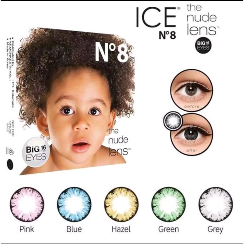 Tersedia untuk mata minus dan mata normal, softlens N8 Big Eye menjadi salah satu softlens yang banyak digandrungi para cewek karena diameternya yang bisa membuat pupil mata terlihat besar dan berkilau seperti mata bayi. Softlens ini memiliki banyak warna menarik seperti pink, blue, hazel, grey, dan green. Sangat cocok digunakan saat ingin menghadiri pesta.