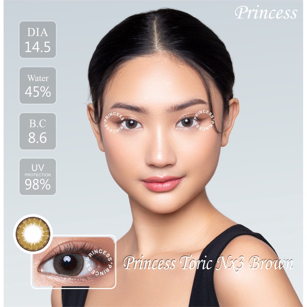 Softlens princess Toric ini cocok buat kamu yang menderita mata minus dan silinder. Tak jarang mata minus sering dibarengi dengan mata silinder. Memakai softlens biasa pastinya tidak akan terlalu membantu penglihatanmu menjadi lebih jelas. Untuk itu kamu perlu softlens yang satu ini.