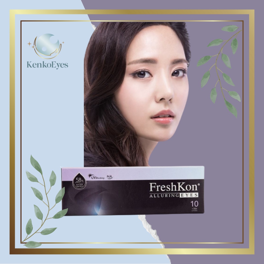 Bahannya yang tipis tidak menimbulkan rasa ganjel saat dipakai jadi pastinya akan nyaman di mata. Freshkon Alluring Eyes ini dikemas dalam kemasan kotak yang berisi 2 blister di dalamnya. Satu kotak terdiri dari minus yang sama, jadi kalau minus mata kalian beda kanan kiri harus beli dua kotak yah. Untuk yang tipe daily, kamu akan mendapatkan 30 pasang softlens per kotak.