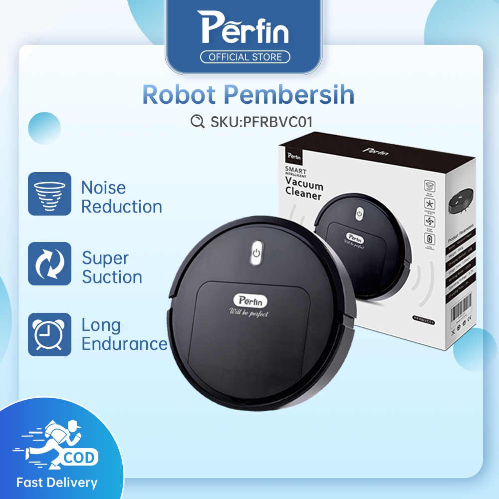 Perfin PFRBVC01 Robot Vacuum adalah perangkat rumah tangga impor dengan fungsi membersihkan lantai dan pengumpulan debu. Robot ini memiliki perencanaan rute pembersihan yang cerdas, suara kerja rendah, serta desain cangkang kelas atas dengan tambahan stiker lucu. Spesifikasi produk termasuk waktu pengisian sekitar 3 jam melalui kabel USB, daya hisap 1800 Pa, kapasitas baterai 1200 mAh, dan tingkat suara pengerjaan di bawah 55db. Paket penjualannya mencakup mesin Smart Vacuum, sapu, kain lap, kabel cas, dan sikat PE.