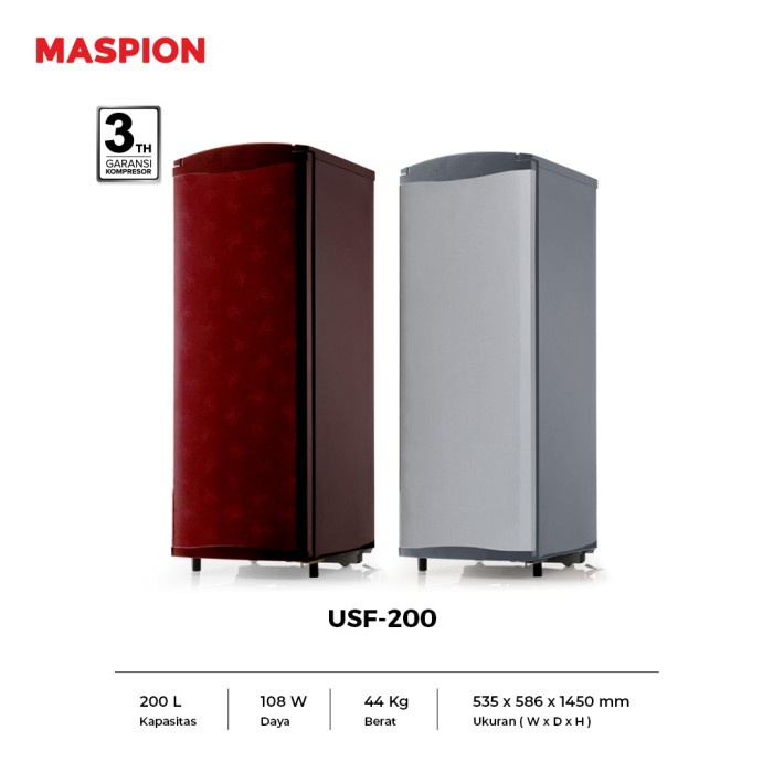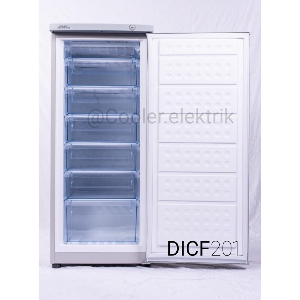 Bagian atas kulkas yang datar dapat digunakan untuk memajang vas bunga atau dijadikan meja pajangan. Pada voltase rendah pun freezer ini tetap bisa berjalan. Freezer 1 pintu ini pun dilengkapi dengan garansi selama 7 tahun untuk kompresor.