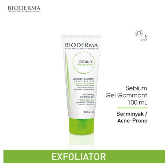 Bioderma Sebium Exfoliating Purifying Gel adalah gel scrub untuk kulit kombinasi, berminyak, dan bermasalah akibat jerawat. Produk ini menghaluskan tekstur kulit, mengencangkan pori-pori, serta mencerahkan kulit sambil mencegah noda bekas jerawat berkat kompleks paten "Fluidactiv" yang menjaga kualitas sebum secara biologis.