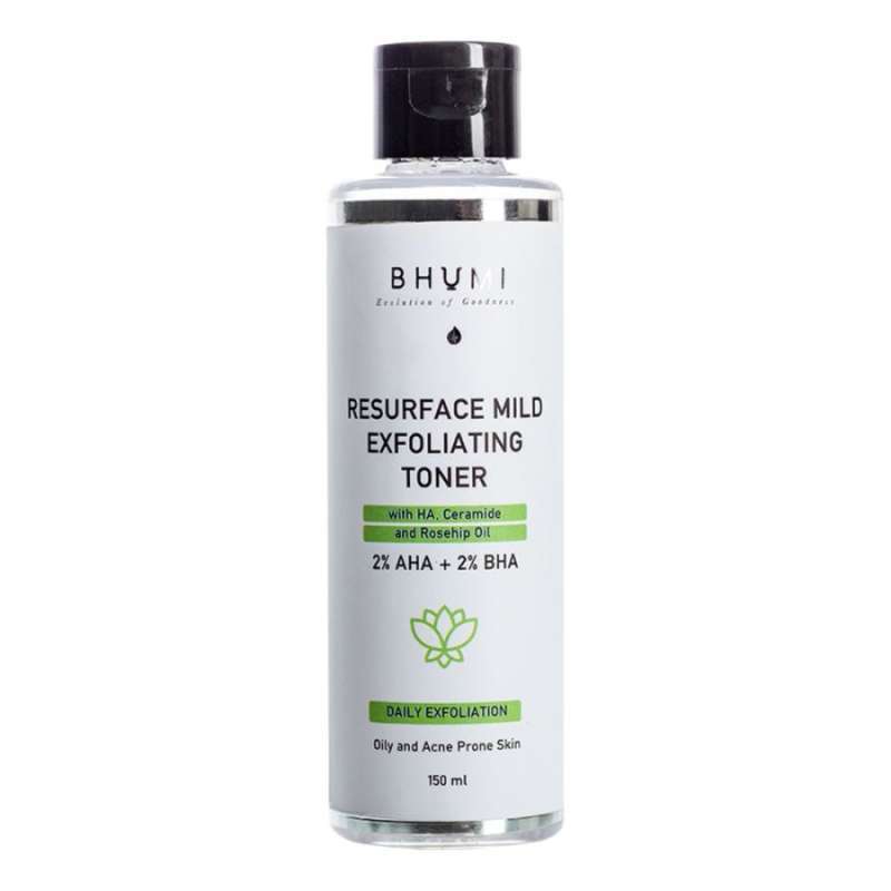 BHUMI Resurface Mild Exfoliating Toner adalah toner multi-fungsi dengan kandungan 2% AHA dan 2% BHA yang bertujuan untuk membersihkan pori-pori dari minyak berlebih, kotoran, dan residu, sambil menghilangkan pertumbuhan jerawat. Produk ini juga mengandung retinoic acid untuk meredakan bekas jerawat dan hiperpigmentasi, serta acnatu extract yang efektif dalam menghambat pertumbuhan jerawat. Toner ini cocok untuk mereka yang memiliki masalah jerawat dan mencari produk yang dapat membantu memperbaiki tekstur kulit serta mengatasi bekas jerawat.