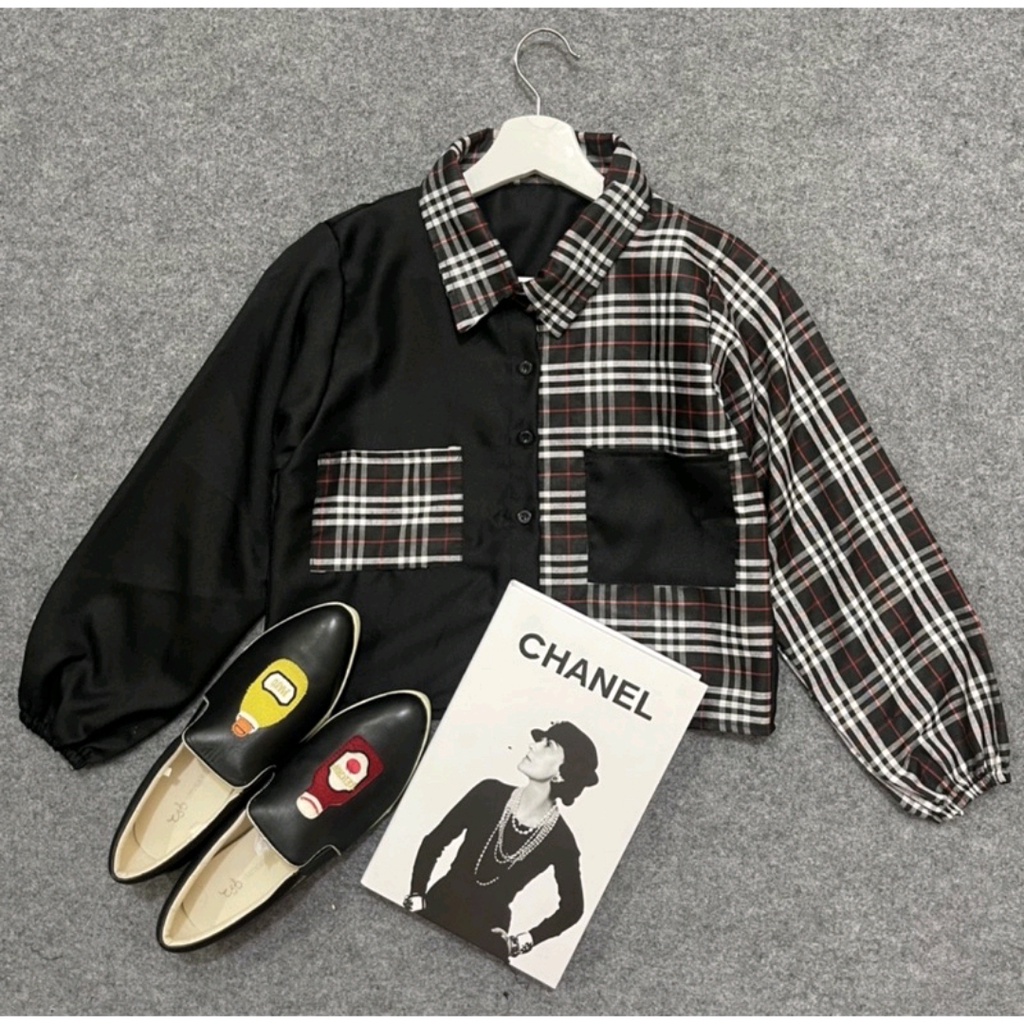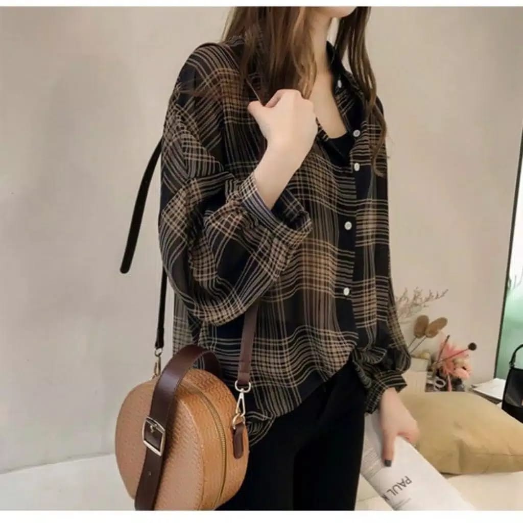 3. Baju Atasan Kemeja Kotak Transparan Wanita Korea Import