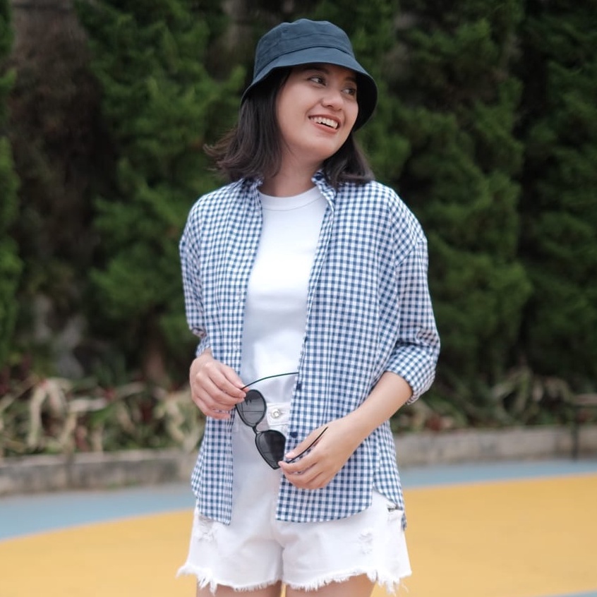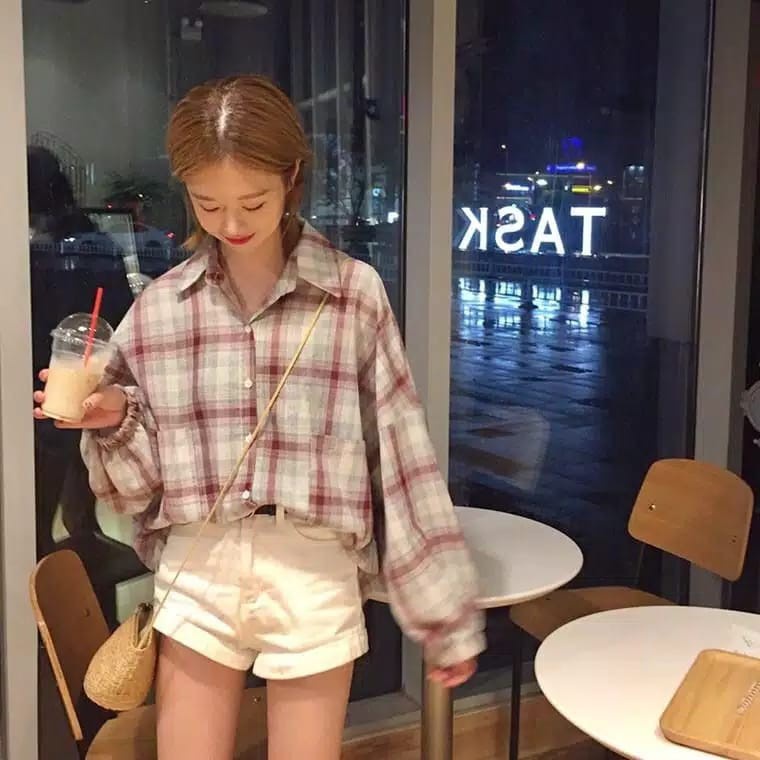 Atasan bermotif kotak-kotak adalah fashion item yang mudah dipadukan dengan bawahan jenis apa pun, termasuk atasan kotak-kotak yang satu ini. Kamu bisa memadukannya dengan celana jeans hingga rok.