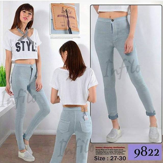 Di Shopee kamu bisa mendapatkan celana high waist skinny yang terbuat dari material softjeans stretch full cotton. Tersedia dalam ukuran 27 hingga 38, celana ini juga memiliki beberapa varian warna seperti putih, biru dan hitam.