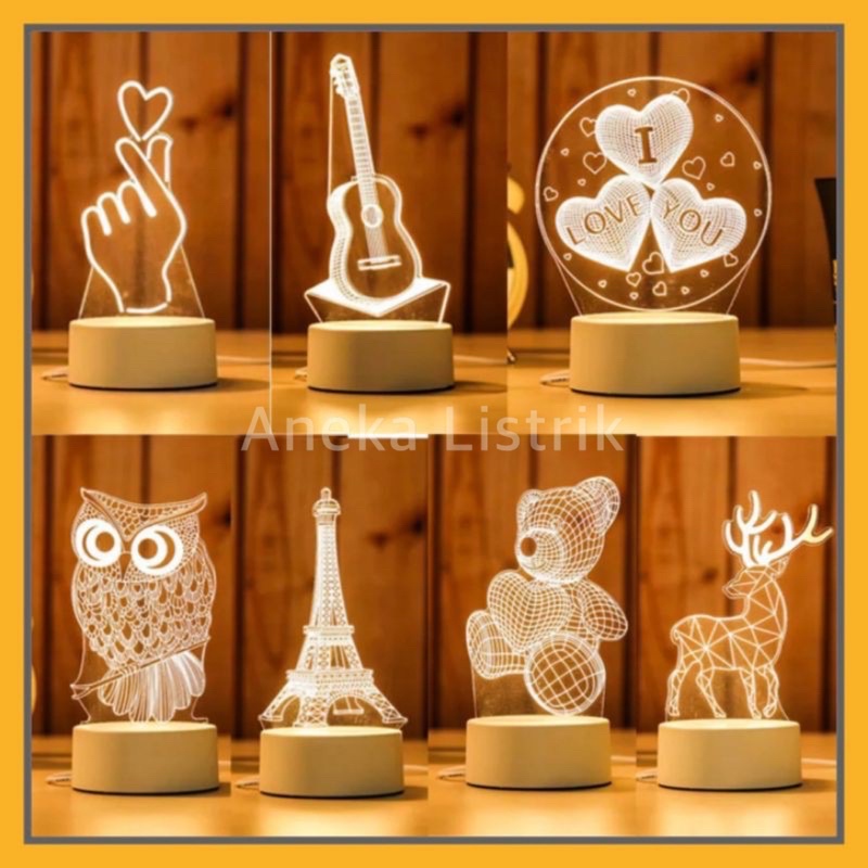 LAMPU TIDUR HIAS DIMENSI 3 WARNA PUTIH KUNING WARMWHITE LAMPU 3D