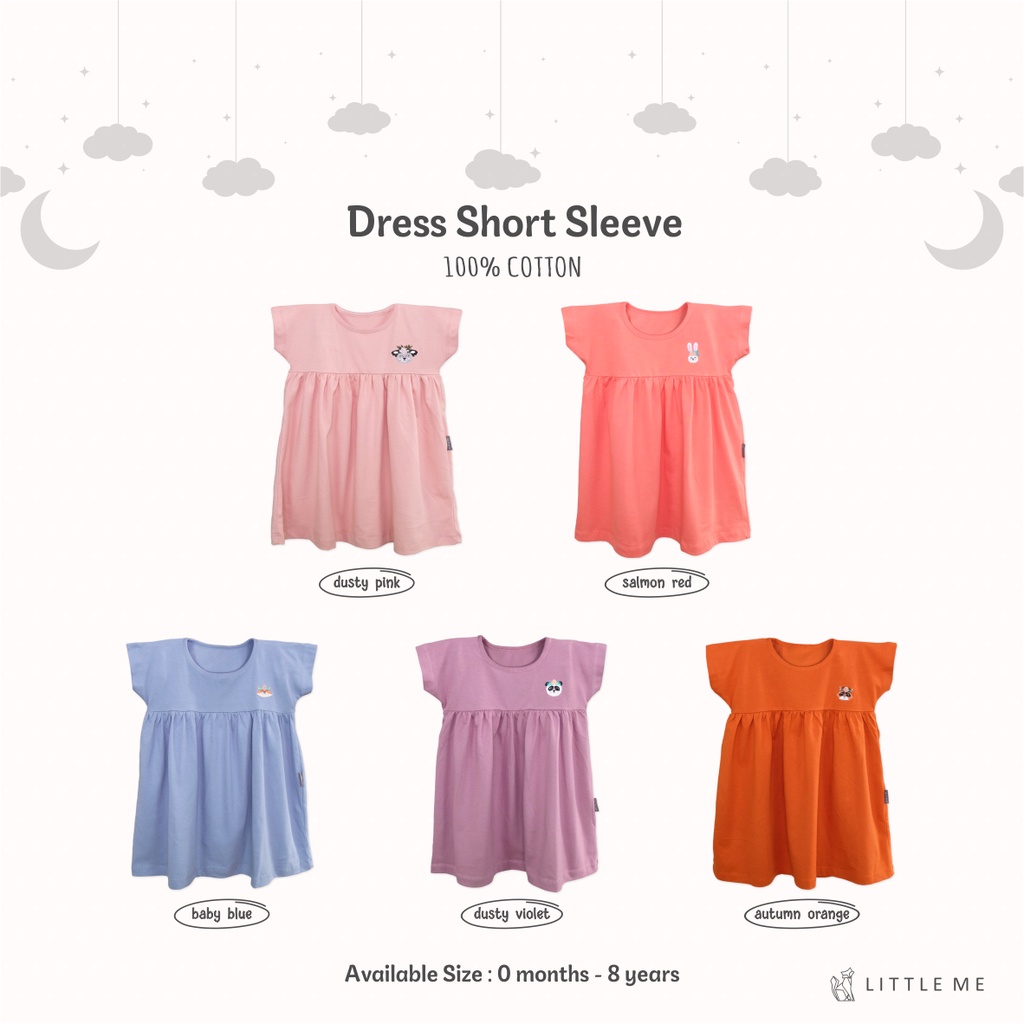 Little Me - Baby & Kids Dress Short Sleeve / Dress Bayi & anak adalah pakaian sehari-hari yang terbuat dari 100% katun yang nyaman untuk bayi usia 0-24 bulan dan anak usia 2-8 tahun. Tersedia dalam lima pilihan warna yang cantik, dress ini memberikan penampilan chic dengan gambar binatang yang lucu di bagian dada. Dapatkan juga FREE BOX & GIFT CARD untuk pembelian minimal 50RB.