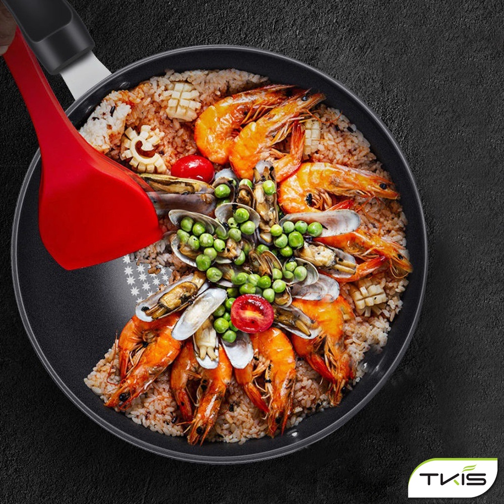 Design ergonomis sangat nyaman dipegang, pegangan anti slip dan anti panas, nyaman untuk memasak, lubang di bagian pegangan untuk gantungan dalam penyimpanan alat ini. Cocok digunakan untuk memasak sehari-hari, dapat digunakan pada semua jenis kompor termasuk kompor induksi.