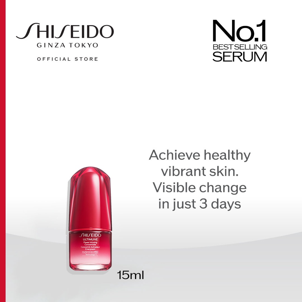 SHISEIDO ULTIMUNE POWER INFUSING CONCENTRATE adalah serum booster yang dapat digunakan kapan saja untuk merawat kulit. Dengan teknologi ImuGeneration REDTM dan ekstrak alami yang kuat, serum ini membantu kulit mempertahankan kondisi idealnya dan meningkatkan kemampuan kulit untuk melindungi diri. Serum ini juga membantu menjaga elastisitas kulit, mencerahkan, memberikan perawatan anti-aging, dan membuat kulit tampak lebih halus. Produk ini juga tidak komedogenik dan telah diuji oleh dermatologis.