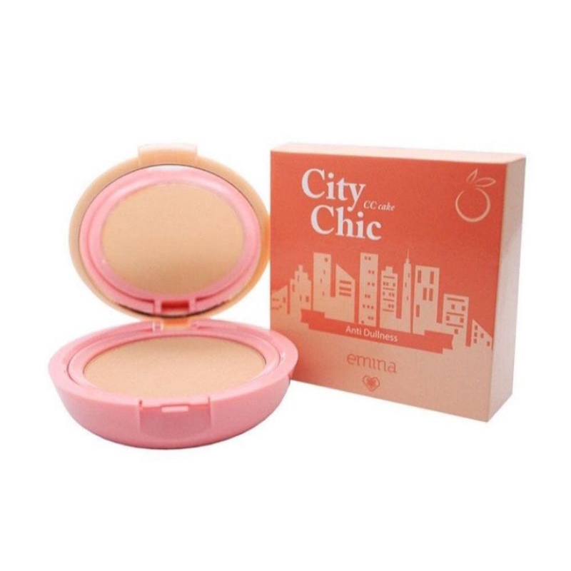 Emina City Chic CC cake memiliki kombinasi unik CC Cream dan Powder untuk hasil yang lebih halus. Diperkaya dengan apricot sebagai antioksidan dan membantu rehidrasi kulit. Bedak padat ini mudah diaplikasikan dan longlasting, terasa ringan serta mudah dibaurkan, tahan lama, dan bebas kilap. Memiliki 4 varian yang dapat disesuaikan dengan warna kulit anda, yaitu latte, butterscotch, meringue, dan peach.