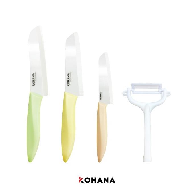 Ada banyak pilihan pisau dapur set terbaik. Salah satunya adalah Kohana macaron knife set yang hadir dengan warna pastel dan desain cantik. Setiap pembelian set pisau ini akan mendapatkan 3 pisau dan satu peeler. Dengan begitu, kamu bisa mendapatkan beberapa jenis pisau berbeda untuk kebutuhan memasak yang berbeda.