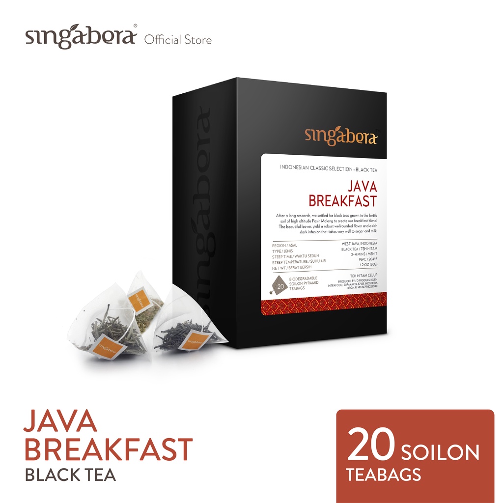 Singabera Java Breakfast merupakan teh hitam premium dari perkebunan teh di Jawa Barat, Indonesia. Cocok untuk setiap saat, sajikan dengan susu atau tambahan gula. Bebas pengawet, bebas perasa tambahan dan 100% alami. Dikemas dalam kantong teh pyramid yang 100% biodegradable.