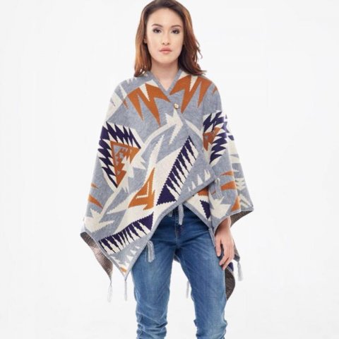 Bermock Meowmeow Misty Poncho Atasan Wanita ini bisa jadi aksen unik di ruang tamu. Dengan desain etnik, kamu bisa meletakkannya di sandaran sofa. Terbuat dari knitted acrylic, produk ini tampak etnik. Kamu bisa membelinya di Blibli dengan harga Rp 399.500.
