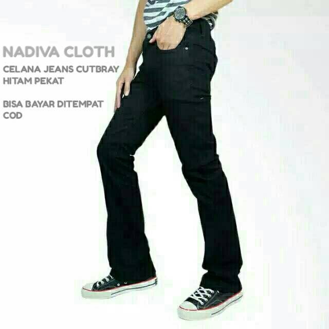 Tersedia dalam empat warna yakni hitam, biru muda, biru tua dan blueblack. Celana dengan panjang 100cm ini tersedia dalam ukuran 27-32. Selain itu, kamu juga bisa mendapatkan DFS Celana Jeans denim cutbray pria yang tersedia di Lazada. Celana ini terbuat dari material jeans denim stretch yang elastis dan fashionable. Tersedia dalam ukuran 28-34 celana ini cocok digunakan untuk jalan-jalan, nongkrong maupun untuk melakukan kegiatan sehari-hari.