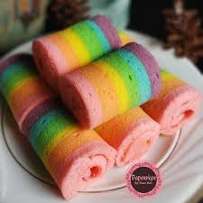 - Keluarkan dari loyang dan setelah dingin iris tipis-tipis dan olesi dengan isian buttercream atau selai, lalu gulung sambil dipadatkan.