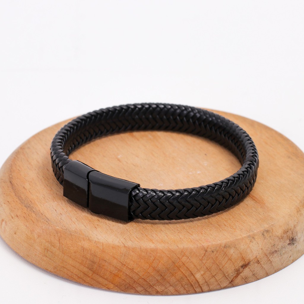 Gelang dengan anyaman berwarna hitam dan juga hiasan berupa magnetic lock ini cocok untuk digunakan oleh pria dan juga wanita. Terbuat dari kulit imitasi dan juga alloy black doff, gelang kulit anyaman ini memiliki pilihan warna hitam, silver dan juga gold. Anda dapat menggunakan gelang ini untuk sehari-hari agar penampilan Anda terlihat lebih casual, namun tidak terlihat monoton.