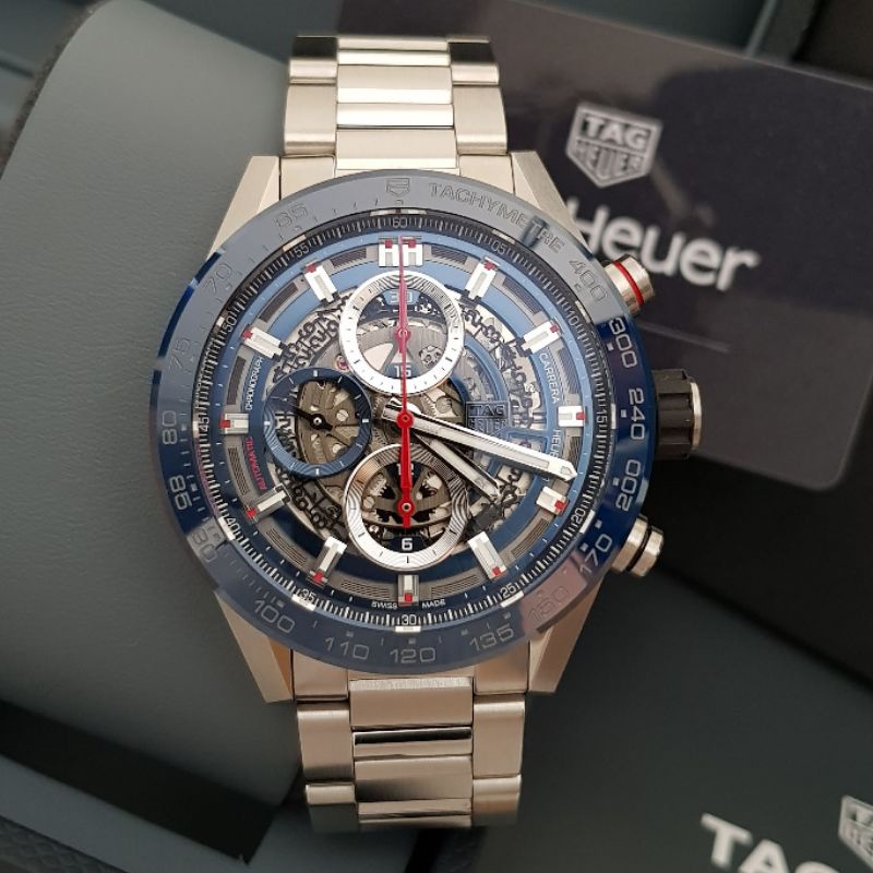 Jam tangan yang baru rilis pada tahun 2022 ini memiliki desain mahal dan mewah. TIdak seperti jam lainnya, desain dari jam tangan TAG Heuer ini memilih untuk menggunakan angka romawi untuk penomoran jamnya. Memiliki warna biru pada bagian dalamnya dan silver untuk pergelangan tangan dan nomornya, jam ini terlihat mewah dan classy.