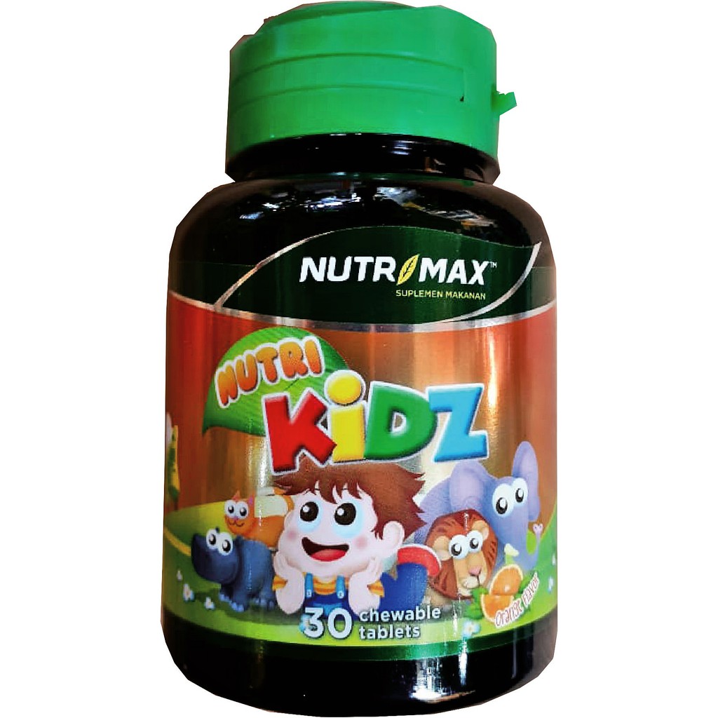 Nutrimax Nutri Kidz adalah suplemen multivitamin dan mineral yang lengkap dengan tambahan L-Lysine untuk meningkatkan nafsu makan anak dan DHA (Docosahexaenoic acid) untuk mendukung perkembangan fungsi mental, otak, dan mata serta meningkatkan konsentrasi belajar dan daya ingat. Tersedia dalam bentuk tablet kunyah dengan rasa jeruk yang disukai anak-anak. Produk ini membantu mencukupi kebutuhan nutrisi anak, menjaga kesehatan, meningkatkan daya tahan tubuh, dan memperbaiki sistem pencernaan. Dosis yang direkomendasikan berbeda sesuai dengan usia anak, dan suplemen ini dapat diminum setelah makan pagi atau siang.