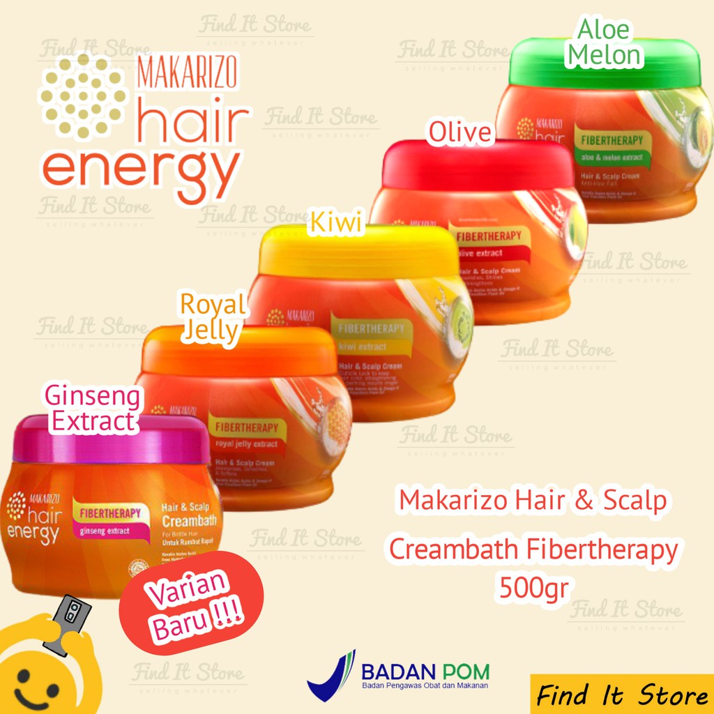 Makarizo Hair Energy Hair & Scalp Creambath adalah produk perawatan rambut dengan berbagai varian, seperti Kiwi, Olive, Royal Jelly, Aloe & Melon, dan Ginseng Extract, yang masing-masing sesuai untuk masalah rambut yang berbeda. Produk ini membantu memperbaiki rambut dari dalam, mengembalikan kesegaran, dan memberikan revitalisasi pada rambut. Rangkaian FIBERTHERAPY mengandung Asam Amino Keratin dan Omega-6 dari Minyak Nabati Passiflora yang berfungsi sebagai anti-inflamasi, memberi kelembapan bagi kulit kepala, dan mendukung pertumbuhan rambut. Cara pemakaian cukup mudah, cukup aplikasikan krim Makarizo pada rambut dan kulit kepala, lalu pijat dengan lembut atau gunakan handuk hangat untuk menunggu selama 2-5 menit sebelum bilas dengan air bersih.