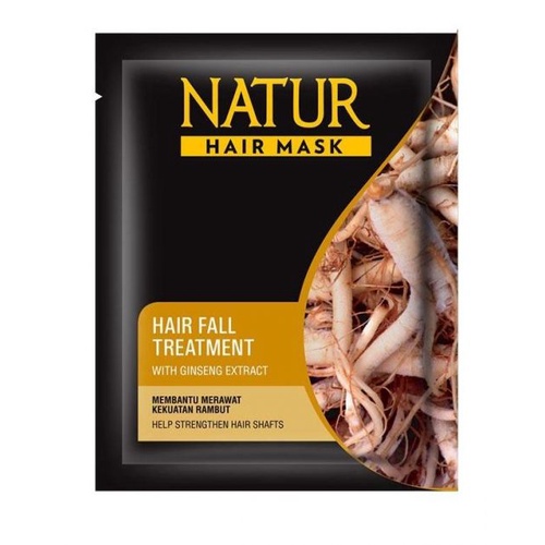 NATUR Hair Mask adalah produk perawatan rambut dengan kandungan Ginseng Extract, Aloe Vera, Olive Oil, dan Vitamin E. Tersedia dalam 3 variasi, masing-masing memberikan manfaat yang berbeda untuk rambut. Varian Ginseng membantu merawat kekuatan rambut, varian Aloe Vera menutrisi dan menjaga kesuburan rambut, sementara varian Olive Oil & Vitamin E menutrisi dan merawat kilau rambut, bahkan dapat mempertahankan rambut yang diwarnai agar tetap sehat dan lembut. Produk ini merupakan masker rambut sekali pakai dengan ukuran 15g + 7.5g dan telah terdaftar di BPOM, serta menawarkan perawatan alami untuk rambut yang lebih sehat dan indah.