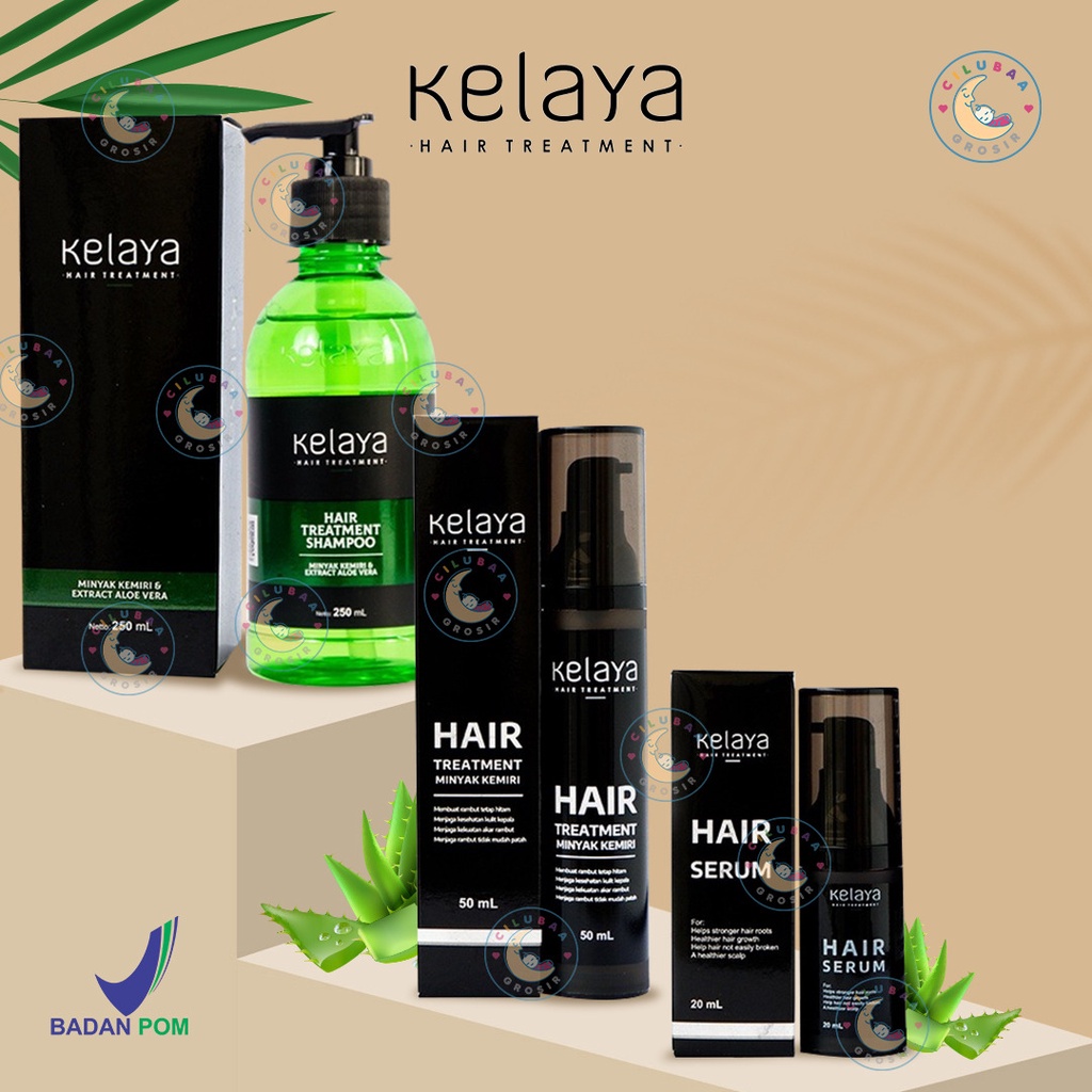KELAYA Hair Treatment adalah rangkaian produk perawatan rambut yang terdiri dari KELAYA Shampoo, KELAYA Minyak Kemiri, dan KELAYA Hair Serum. Semua produk ini 100% original dan telah mendapatkan izin BPOM. Kandungan kemiri dan lidah buaya dalam shampoo memberikan manfaat untuk perawatan rambut secara tradisional, sementara minyak kemiri yang diperkaya dengan Castor Oil membantu menumbuhkan, menebalkan, dan menyuburkan rambut. Hair serum dengan formula inovatif dan diperkaya Panax Ginseng Extract, Argan Oil, serta Vitamin B5 membantu akar rambut tetap kuat, tumbuh dengan baik, dan menjaga kulit kepala sehat. Rangkaian produk KELAYA Hair Treatment dapat membantu Anda merawat rambut dan kulit kepala dengan baik untuk rambut yang kuat, sehat, dan lembut.