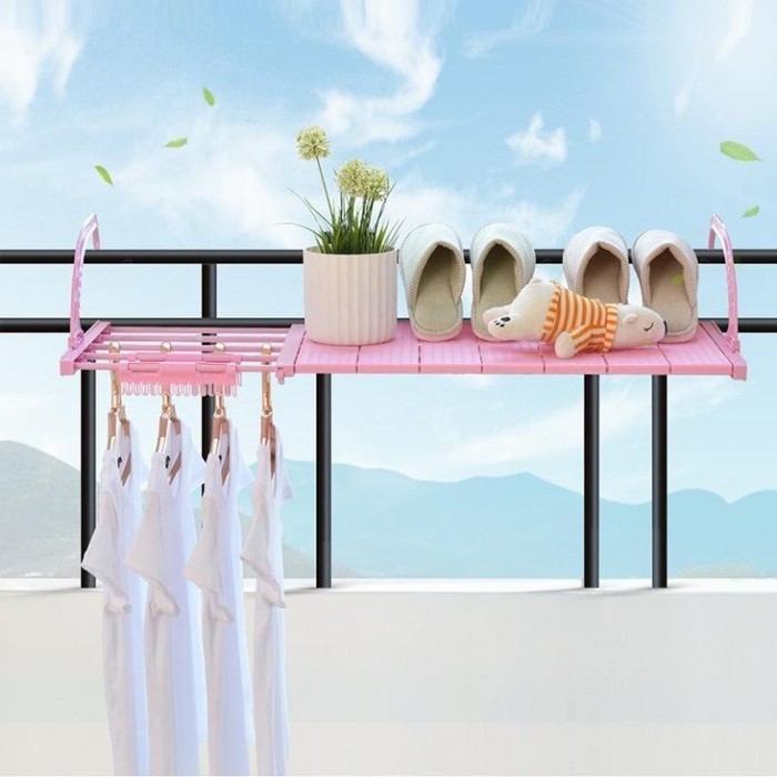 Selain harganya yang murah, jemuran ini hanya perlu dikaitkan pada pembatas balkon seperti kaca, pagar, atau jendela. Seperti namanya, jemuran ini juga multi fungsi. Ketika bagian palang tidak digunakan untuk menjemur pakaian, Anda dapat menggunakannya sebagai rak sepatu atau tanaman.