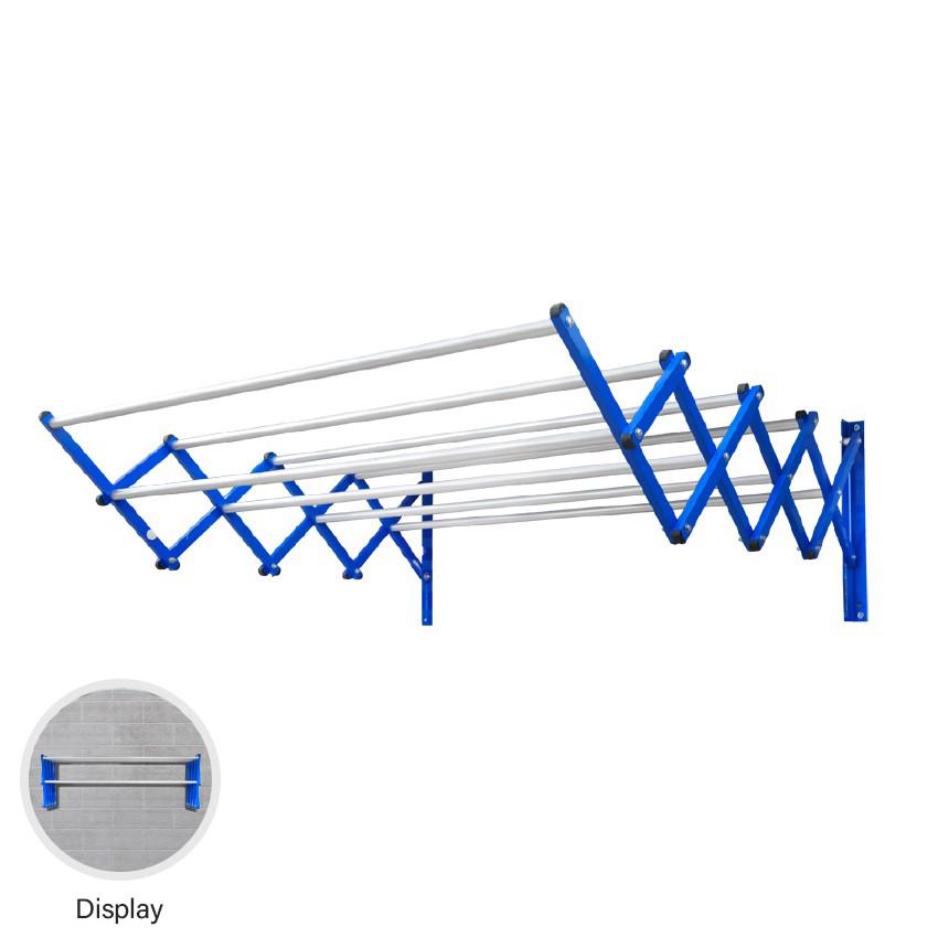 Rekomendasi jemuran selanjutnya adalah jemuran baju dinding. Jenis jemuran ini cocok untuk digunakan di dalam rumah terutama apabila sumber cahaya satu-satunya yang masuk ke dalam rumah adalah dari atap atau langit-langit. Produk ini dapat direntangkan untuk digunakan dan menampung banyak pakaian atau dapat dilipat kembali dengan menekuknya ketika tidak digunakan. Untuk menggunakan jemuran baju dinding perlu instalasi pemasangan ke tembok.