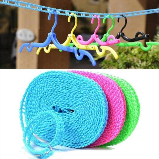 Jenis jemuran baju klasik lainnya ialah tali jemuran baju. Produk ini cocok untuk digunakan di luar ruangan khususnya halaman rumah. Tali jemuran baju ini multifungsi karena selain dapat menggantung pakaian seperti biasanya, produk ini memiliki lubang di sela talinya untuk mengait gantungan baju. Sehingga membuat pakaian yang Anda letakkan di gantungan tidak tergelincir dan memisah dengan baik sehingga proses pengeringan lebih maksimal.