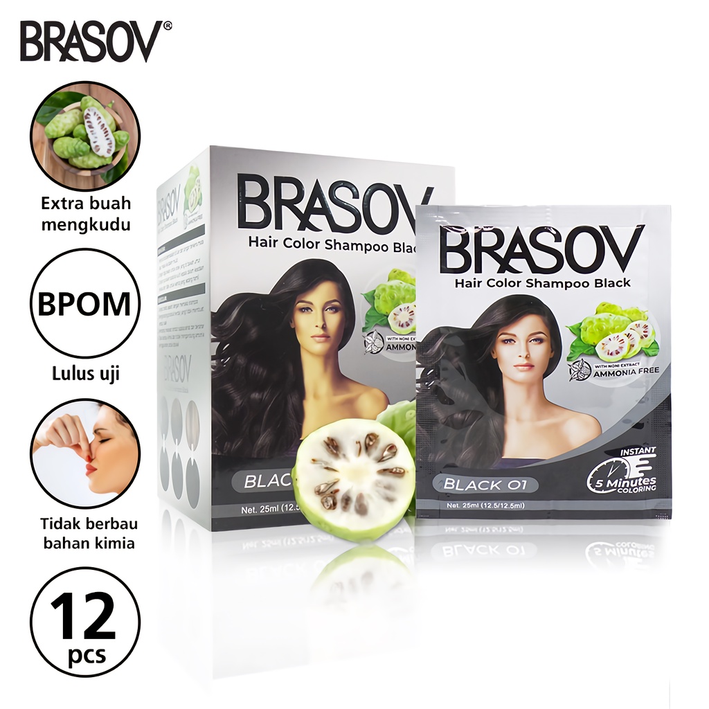 Brasov Hair Color Shampoo Black merupakan sampo penghilang uban yang tidak berbau menyengat dan mengandung bahan yang aman. Sampo ini juga diperkaya dengan kandungan mengkudu untuk menjaga kesehatan dan kecerahan rambut. Cara penggunaannya juga praktis, setelah beberapa menit didiamkan, Anda tidak perlu membilas rambut dengan sampo lagi. Sampo ini sudah dilengkapi dengan aplikator sarung tangan plastik dalam pembeliannya.