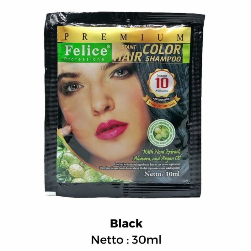 Dengan Felice Premium Instant Hair Color Shampoo Black, Anda dapat mencapai warna rambut hitam instan dengan mudah. Cukup cuci rambut, aplikasikan shampoo, diamkan selama beberapa menit, dan bilas hingga bersih. Tidak perlu menggunakan shampoo tambahan. Harga produk yang terjangkau membuatnya menjadi pilihan yang praktis dan ekonomis untuk mendapatkan tampilan rambut yang menawan. Dapatkan rambut hitam yang sehat dan berkilau dengan Felice Premium Instant Hair Color Shampoo Black yang tersedia dengan harga mulai dari Rp. 31 Ribu.