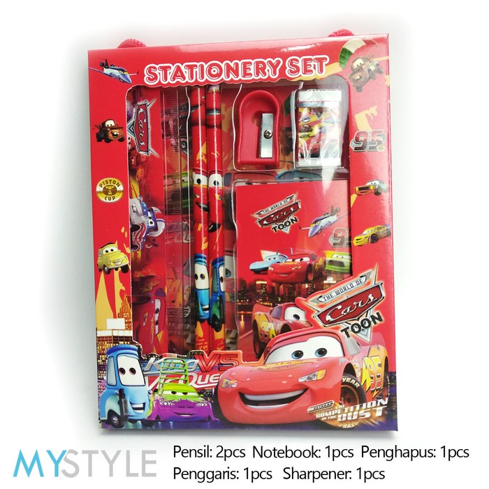 Biasanya anak mudah sekali kehilangan peralatan tulis. Oleh karena itu, hadiah berupa peralatan tulis seperti Mystyle Paket Alat Tulis Pensil Set 6 in 1 tentunya akan sangat bermanfaat. Paket ini terdiri dari dari dua pensil, notebook, penghapus, penggaris, dan sharpener masing-masing satu pcs. Menariknya paket alat tulis ini tersedia dengan berbagai karakter favorit anak.