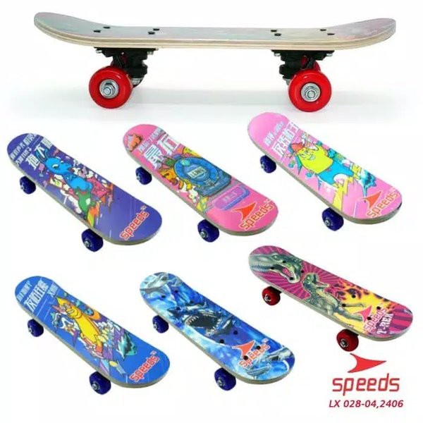 Skateboard bisa jadi kado menarik yang bermanfaat untuk meningkatkan kesehatan fisik dan mental bagi perkembangan anak. Saat ini sudah banyak skateboard yang dirancang khusus untuk anak-anak. Salah satunya ada Papan Luncur Anak Speeds LX 028-3 yang bisa jadi pilihan. Papan terbuat dari bahan kayu berkualitas sehingga tidak mudah rusak dan tahan lama. Desainnya juga unik dengan gambar karakter yang tentunya akan disukai anak laki-laki.