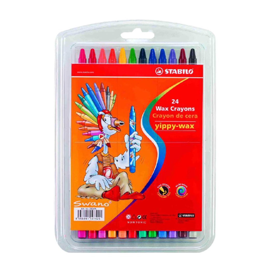 Pilihan lainnya ada crayon dari Stabilo. Bahan dasarnya menggunakan polyethylene yang bebas racun. Tentunya aman digunakan oleh anak-anak. Produk ini tersedia dalam 24 pilihan warna menarik untuk menggambar. Crayon juga tidak mengotori tangan dan tidak mudah patah sehingga aman dimainkan anak-anak. Layaknya stabilo, crayon ini memiliki warna terang dan mudah menyatu.