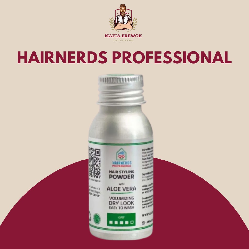 Hair Powder Hairnerds Professional adalah solusi praktis untuk membuat rambut mudah diatur, memberikan tekstur, dan menambah volume sepanjang hari. Diformulasikan dengan ekstrak Aloe Vera untuk mencegah dan mengatasi ketombe pada kulit kepala. Cara penggunaannya cukup mudah, cukup taburkan atau semprotkan hair powder pada rambut kering, atur sesuai gaya yang diinginkan, dan efeknya akan hilang setelah dibilas dengan air dan shampoo. Produk ini memberikan hasil dry look finish dengan tingkat hold 4/5 dan dapat digunakan sebagai finishing untuk pomade atau clay yang Anda gunakan.