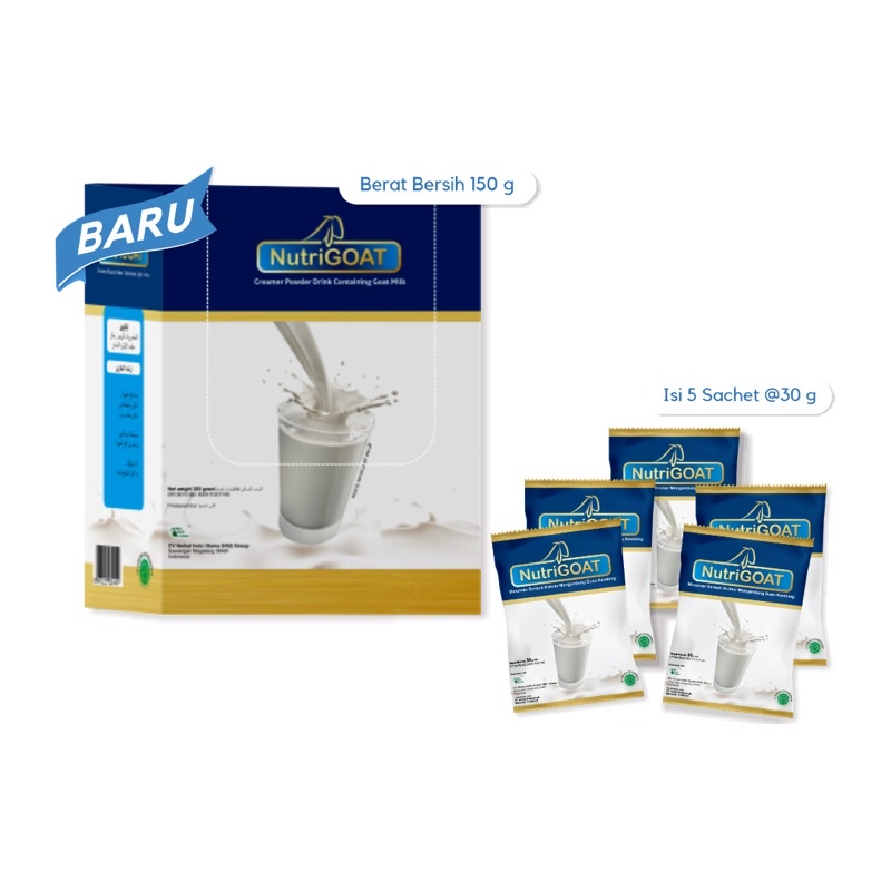 NutriGOAT, susu kambing etawa yang diminati banyak orang, terkenal karena kandungan susu konsentratnya yang melimpah. Dengan tambahan Gula Aren dan Creamer, NutriGOAT memberikan cita rasa yang nikmat dan berbeda. Susu ini kaya akan protein, kalsium, vitamin A, vitamin D, dan nutrisi lainnya yang bermanfaat bagi tubuh. Ada banyak manfaat yang bisa kita dapatkan dengan mengkonsumsi susu kambing etawa ini, seperti melancarkan produksi ASI, meningkatkan kecerdasan anak, mencegah dan mengatasi stres, baik untuk kesehatan jantung, mengobati penyakit pernapasan, perawatan kecantikan, meningkatkan antibodi, dan bisa digunakan untuk diet.